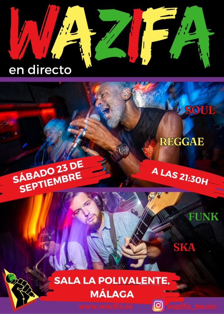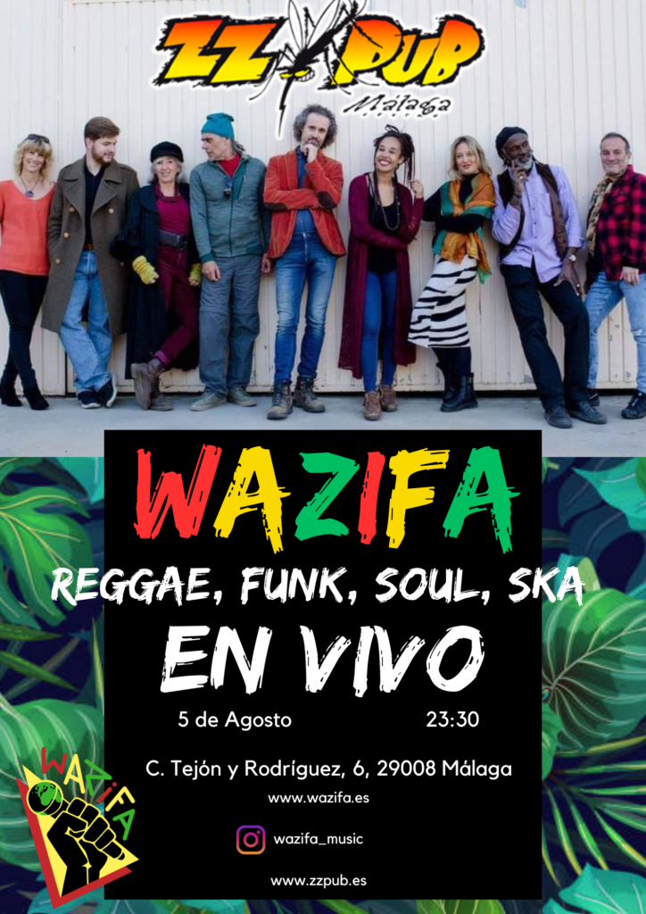 Bienvenidos a la página web de Wazifa, una banda musical con sede en el sur de España, en la pintoresca ciudad de Órgiva. Con una mezcla única de funk, soul, ska y reggae, Wazifa lleva al público a un viaje musical emocionante lleno de diversión, baile y buen rollo. La banda está formada por músicos de diferentes partes del mundo, creando una constelación multicultural. Explora nuestra página y únete a la comunidad de Wazifa.